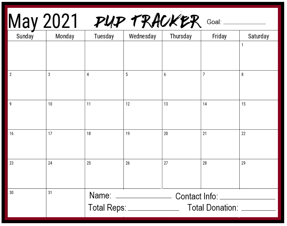 If you’re unable to make the event or stream live, have no fear, P.U.P. is all month long this year! We have a nifty little tracking sheet (right click and download the photo below or under the “sign me up” tab) so you can keep track of your reps all month long so you know your final tally. (Psst, there might be an extra prize for those who complete their initial goal and turn in their cards… just sayin’.)